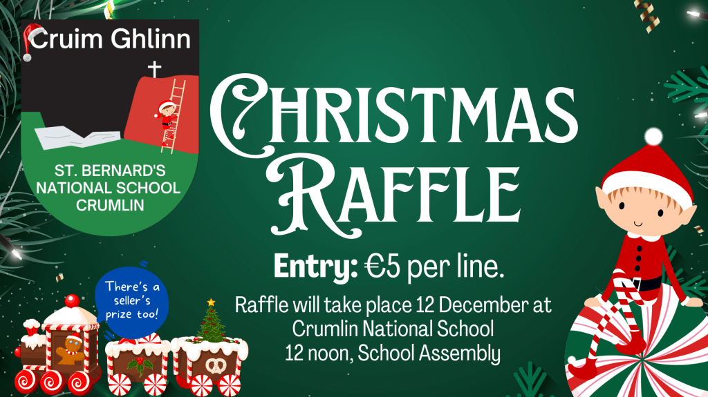 The much-anticipated annual Crumlin National School Christmas Raffle takes place on 12 December at 12 noon. Lines cost €5 each, with every contribution making a meaningful difference to our school.